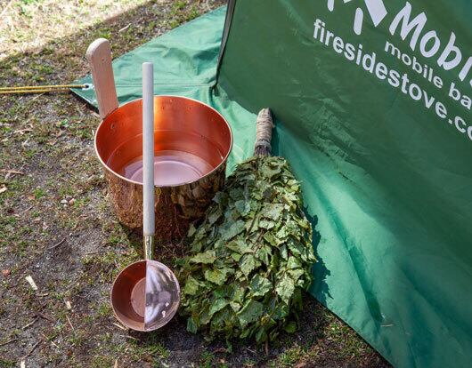 時を重ねるごとに風合いが増すのが銅製品の魅力です。道具を育てながらロウリュする贅沢をモバイルサウナの中で楽しめます。