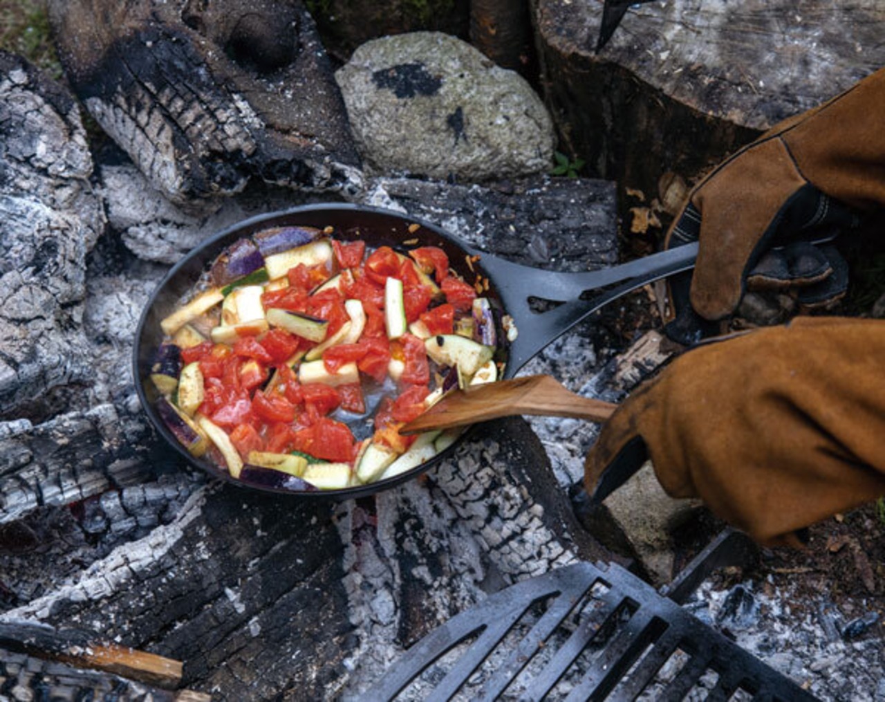 育てて鍛えるフライパン継ぎ目が一切ない1枚物のシームレスフライパンは、存分にたき火を楽しむヘビーユーザーの期待に応えるタフな道具。