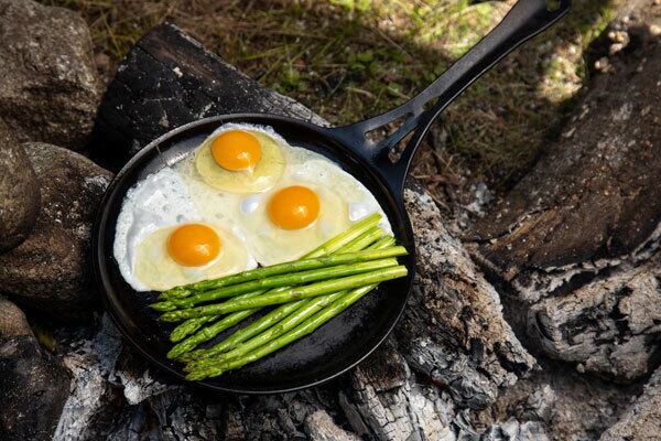継ぎ目が一切ない1枚物のシームレスフライパンは、存分にたき火を楽しむヘビーユーザーの期待に応えるタフな道具。