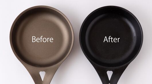 シーズニングすることで食材が焦げ付きにくくなり、防錆の効果が持続します。さらに調理を繰り返すことで定着していきます。食材の油をまとい、自分色に育つ過程をお楽しみください。