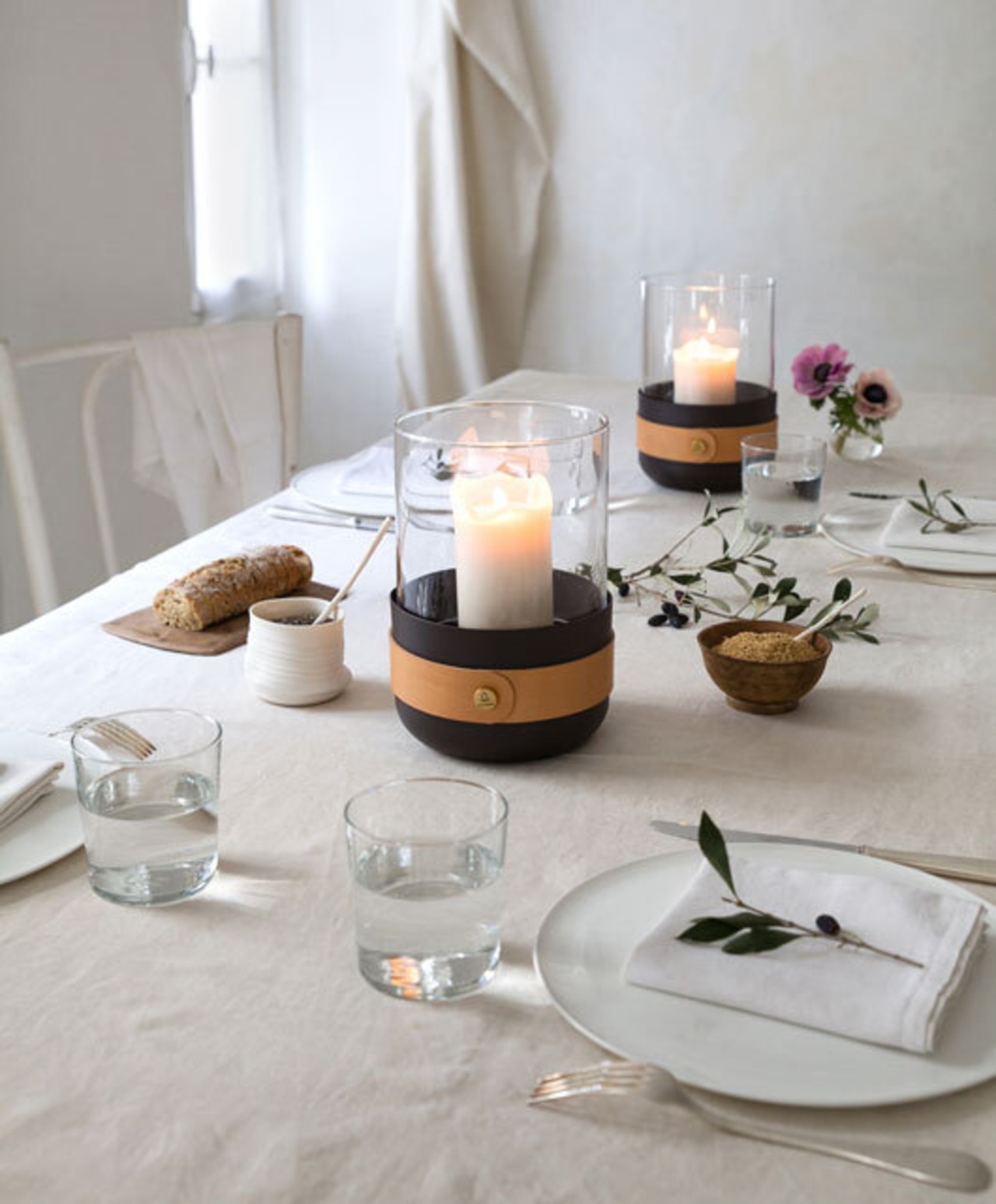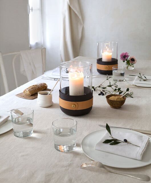 テーブルに映える存在感のあるサイズで、職人による手吹きガラスがニュアンスのある焔の揺らめきを演出します。