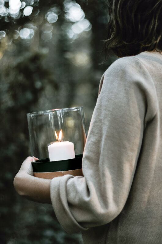 手吹きガラスごしに見る焔は北欧の森を渡る風のゆらめき、大きなキャンドルにそっと火を灯すと時間がゆっくりと流れ出す…