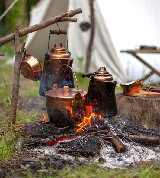 銅は熱伝導がよく、底広のデザインによってお湯が早く沸くため、冬の暮らしに大活躍します。ストーブトップでたっぷり沸かして料理に使ったり、キッチンでの洗い物にも。また、アウトドアでも重宝します。