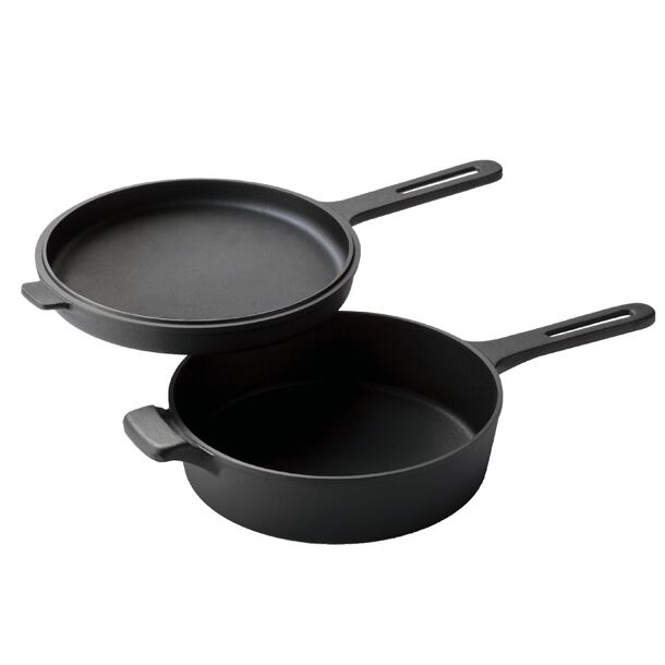 岩手発の本格ダッチオーブン「ダッチオーブン天火 24cm ノーマルスキレット」。蓄熱力に加えて、分厚い鉄蓋の重みで気密性も抜群。食材の旨味を逃さず、短時間で芯まで火を通します。蓋は裏返すと、本格的な鉄のフライパンとしても活躍します。鉄鍋とフライパン、二役をこなしてくれます。アウトドアシーンに”本物でかっこいい”調理道具をプラスしたい方におすすめです。